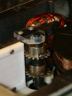 Eines der Hauptprobleme über die viele Besitzer der SteppIR-Antennen klagen sind ausgerissene Motorachsen auf den Schrittmotoren. Da die Länge des Berylliumbandes und somit die Elementlängen direkt von den Schrittmotoren bestimmt werden, ist natürlich eine abgebrochene Motorachse so ziemlich das schlimmste, das einer derartigen Antenne passieren kann. Zu allem Überfluss kann aber auch das Berylliumband selbst durch die abgebrochenen Teile beschädigt werden. Sieht man sich die Konstruktion an, wird auch recht schnell klar, warum so etwas passieren kann: Der Schrittmotor trägt auf seiner Abtriebsachse eine Achsverlängerung aus Kunststoff, auf der zwei grobe Zahnräder in Löcher im Berylliumband eingreifen um so das Band vor-und zurück zu transportieren.