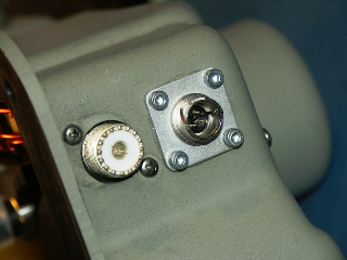 Hier links eine der Motoreinheiten von Harald, DB3MA. Bei meiner eigenen DRIVEN-Motoreinheit habe ich die PL-Buchse bei der Gelegenheit durch eine hochwertige N-Buchse ersetzt. Die N-Buchsen haben den Vorteil dass sie - neben den besseren HF-Eigenschaften - eine eingebaute "Dichtung" besitzen.