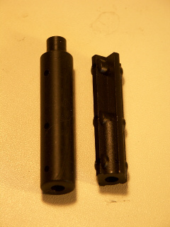 Inzwischen hat sogar der Hersteller erkannt, dass abgebochene Achsen und die damit einhergehenden Folgeschäden seinem Ruf nicht gerade zuträglich sind und regelt das ganze auf amerikanische" Art - er liefert auf Anfrage verstärkte Achsen aus einem glasfasergefüllten Kunststoff (im Bild rechts), der angeblich nicht mehr so leicht bricht - und überlässt dem Kunden, den nicht ganz einfachen Austausch der ohne Spezialwerkzeug und ohne jegliche Beschreibung praktisch kaum möglich ist.