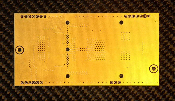 Die MPPA PLatine Version 2.1, Rückseite, komplett gold metallisiert, Massefläche mit Kühldurckkontaktierungen:
