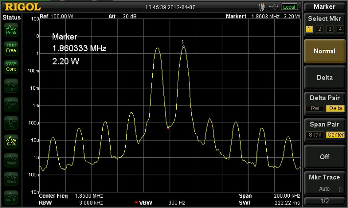 Einige Messungen der MPPA, IMD3 < -40dBc, bei ca. 8.8 Watt PEP (2.2Watt * 4 (6dB) = 8.8Watt PEP)