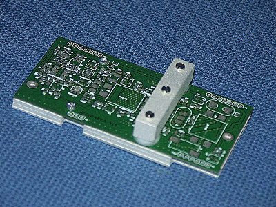 Wichtig ist natürlich auch, den Kühlblock auf einen ausreichend großem Kühlkörper oder eine kühlende Montageplatte zu schrauben - immerhin müssen bei Vollastbetrieb (RTTY, FM, PSK, WJST usw) etwa 10-12 Watt abtransportiert werden. Der Heatspreader alleine ist kein ausreichender Kühlkörper!